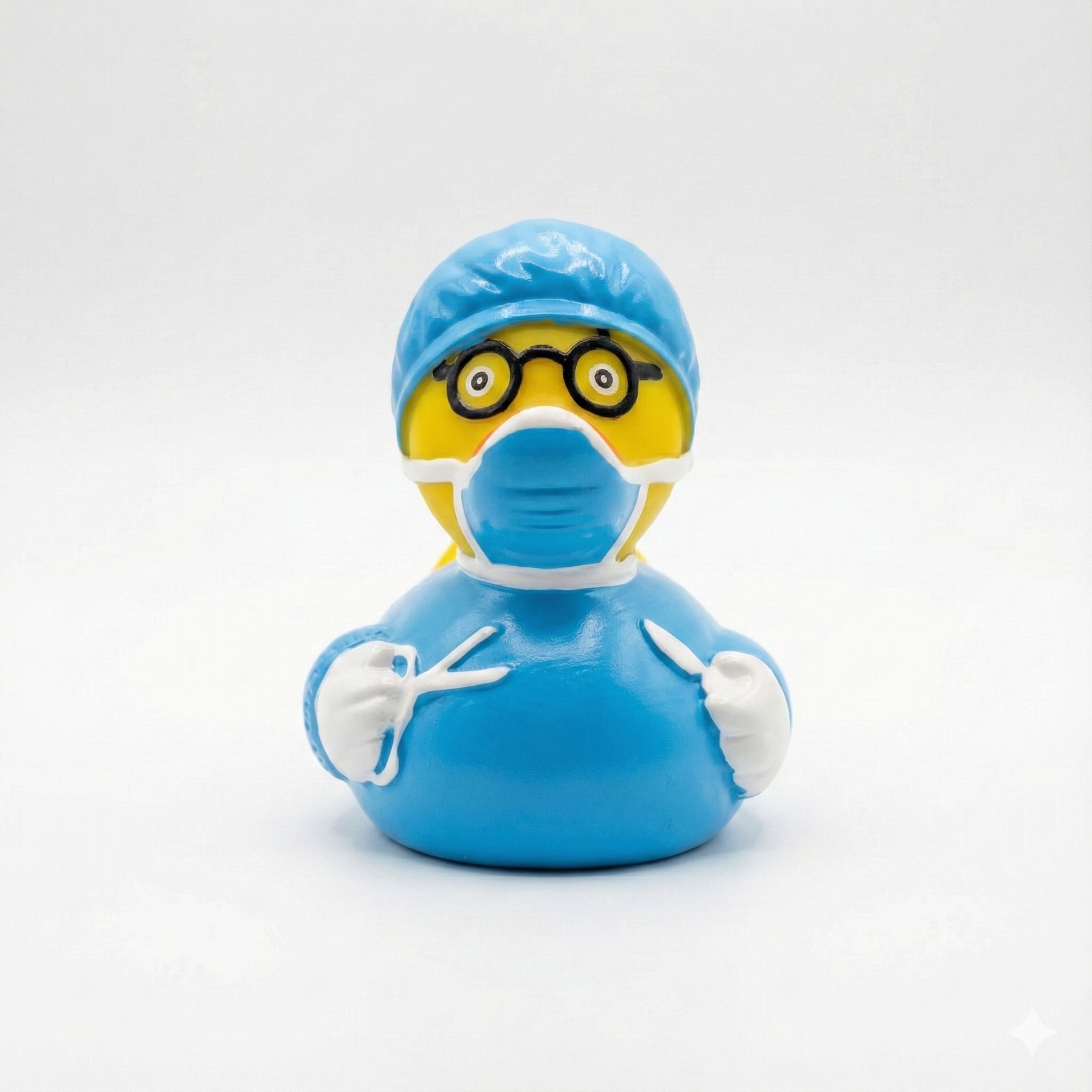 Surgeon Rubber Duck with mask, scalpel, and gloves